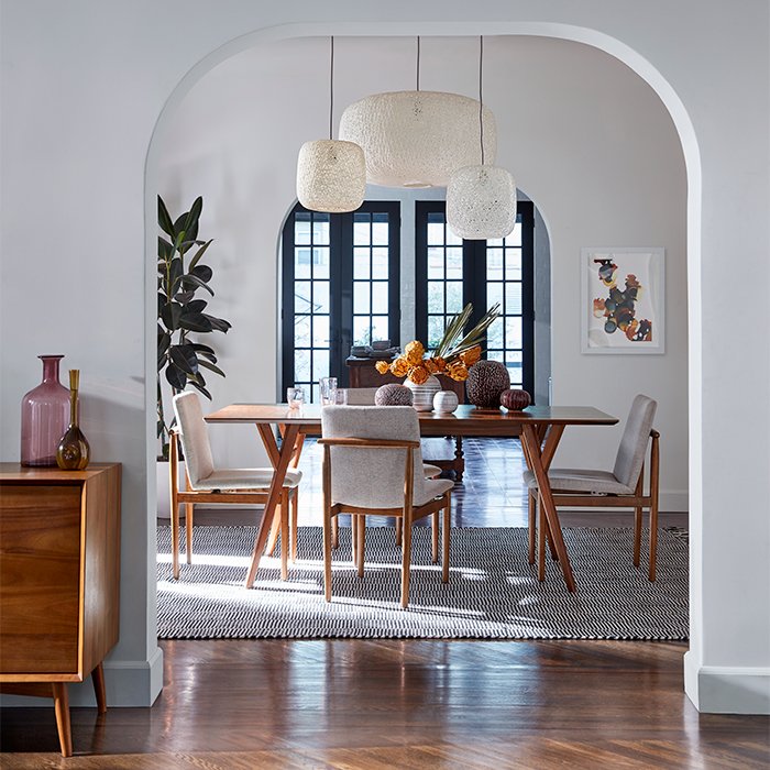 For dining room inspiration that radiates harmony, look no further than this transitional space.